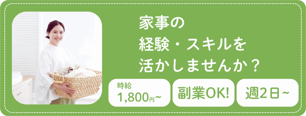 - 家事代行・清掃などの経験者優遇(1年以上目安)
